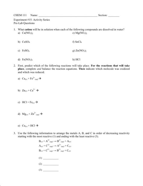 Read Online Activity Series Pre Lab Answers 15 PDF